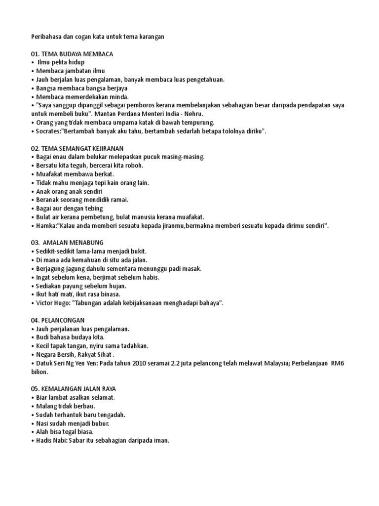 Peribahasa Dan Cogan Kata Untuk Tema Karangan Pdf